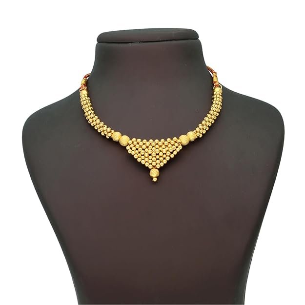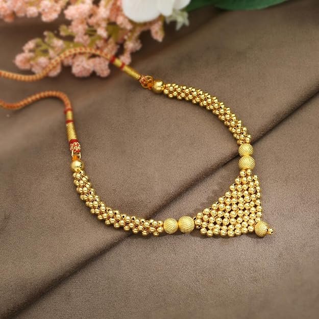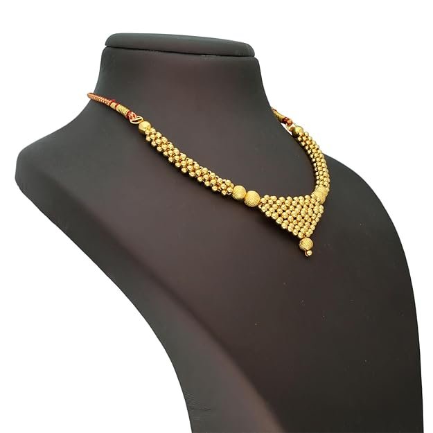 Traditional Tushi Design: Classic Maharashtrian/Indian traditional pattern that sits elegantly close to the neck, perfect for ethnic wear.
