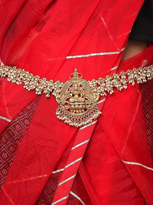 Elegant Design: Gold-plated kamarbandh with dazzling crystal studs, adding a royal touch to your ethnic outfit.